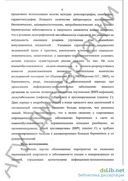 предложено использование многих методик: допплерография, сонография, кардиотокография; большого количества лабораторных исследований: биохимических, эндокринологических, микробиологических и т.д. Однако перинатальная заболеваемость и смертность снижаются весьма медленно, что в условиях демографической нестабильности очередной раз указывает на актуальность изыскания резервов улучшения этих важнейших популяционных показателей. - Указанное стратегическое направление медицинской науки и практики, реализуемое в конкретных социально-экономических, экологических и санитарно-эпидемиологических условиях, должно отражать существующие реалии каждого из них. Но если взаимообусловленности медико-социальных и эколого-репродуктивных аспектов родовспоможения посвящено значительное количество исследований последних лет (Радзинский В.Е., 2005;Фролова О.Г., 2005), то беременность, роды, послеродовый и перинатальный периоды при хронических иифекционно-воспалительных заболеваниях женского организме во многом остаются недостаточно изученными (ВИЧ-инфекция), дискутабельными (сифилис, туберкулез) и противоречивыми (гепатит С). Даже хорошо и подробно изученный в конце прошлого века хронический и гестационный пиелонефрит оставляет больше вопросов, чем реальных знаний. Можно констатировать, что в целом сведения о современных иифекционно-воспалительных заболеваниях беременных в свете их взаимообусловленности с перинатальными исходами разобщены, не систематизированы, порой противоречивы (ВИЧ, гепатит С) и требуют оптимизированного подхода к диспансеризации больных беременных и их родоразрешению.