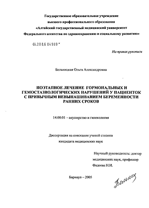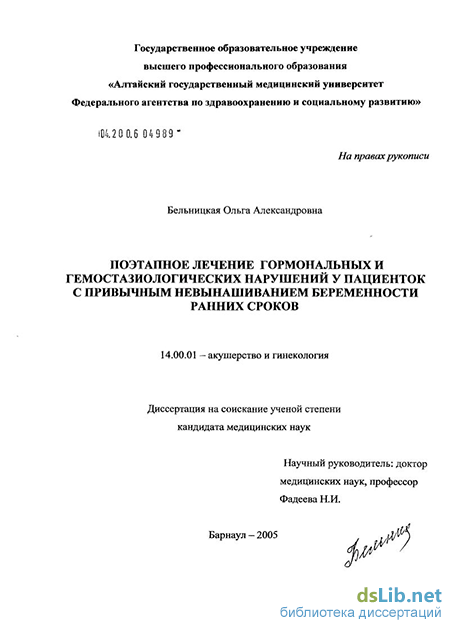 Цель работы; снижение репродуктивных потерь, а также частоты и тяжести перинатальной патологии новорожденных, путем поэтапного выявления и коррекции гормональных и гемостазиологических нарушений у пациенток с привычным невынашиванием беременности ранних сроков