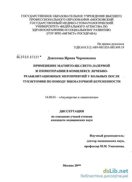 Глава 4 Оценка эффективности лечебно-реабилитационных мероприятий с применением магнито-ик-свето- лазерной и озонотерапии у больных после тубэктомии по поводу трубной беременности .