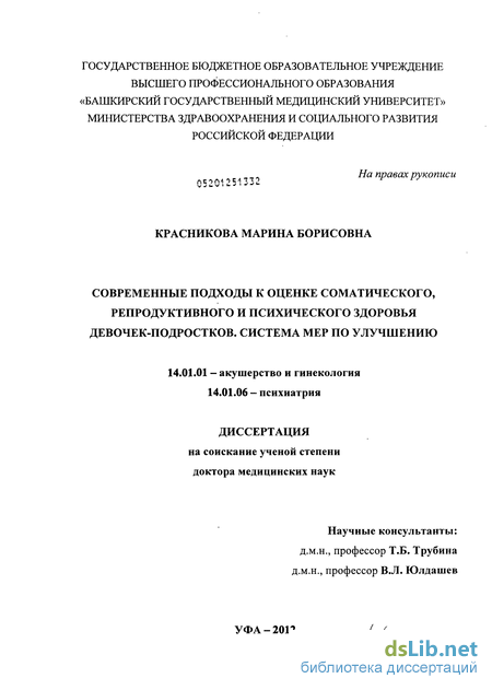 В современных условиях в системе здравоохранения особое место занимают проблемы здоровья (соматического, репродуктивного, психического) девочек-подростков, как резерв в снижении материнской и младенческой смертности, сохранении фертильности будущей матери (Прилепская В.Н. 2011, Радзинский В.Е. 2011).