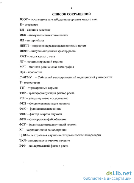 Внедрение. Результаты исследования используются в учебном процессе на афедре гистологии, эмбриологии и цитологии Сибирского государственного едицинского университета (СибГМУ) по теме «Женская репродуктивная истема»; на кафедре акушерства и гинекологии лечебного факультета СибГМУ о теме «Объемные образования яичников». «Способ лечения функциональных ист яичников», и «Средство и способ профилактики рецидива кист яичников» недрены в практику гинекологической клиники СибГМУ, гинекологического тделения и женской консультации МЛІТУ Роддом №1 г. Томска.