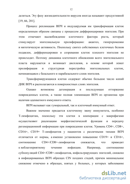 Таким образом, после реализации закодированной в геноме программы с участием онкогенов Е6 и Е7 происходит усиленный синтез клеткой — хозяином ДНК, необходимой вирусу, при этом клетки эпителия начинают делиться. Эту фазу жизнедеятельности вирусов иногда называют продуктивной [19, 66, 201].