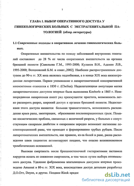 Глава I Выбор оперативного доступа у гинекологических больных с экстрагенитальной патологией (обзор литературы) . 7