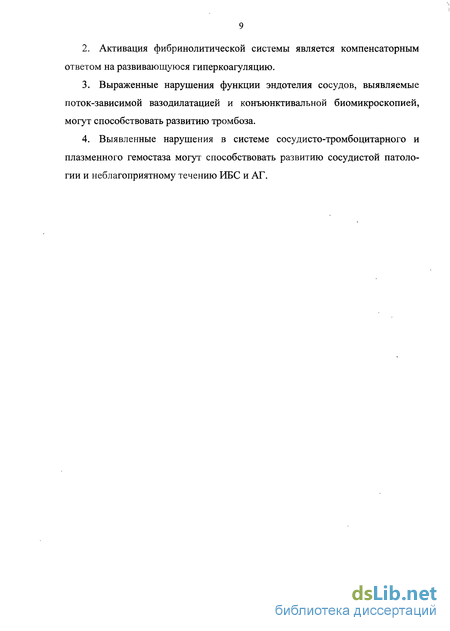 Выявленные нарушения в системе сосудисто-тромбоцитарного и плазменного гемостаза могут способствовать развитию сосудистой патологии и неблагоприятному течению ИБС и АГ.