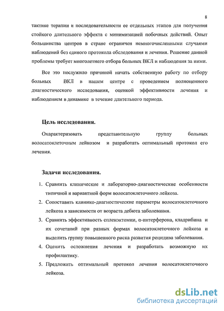 волосатоклеточным лейкозом и разработать оптимальный протокол его лечения.