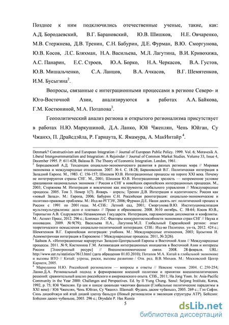 - Динамика интеграционных и дезинтеграционных процессов на евразийском пространстве
