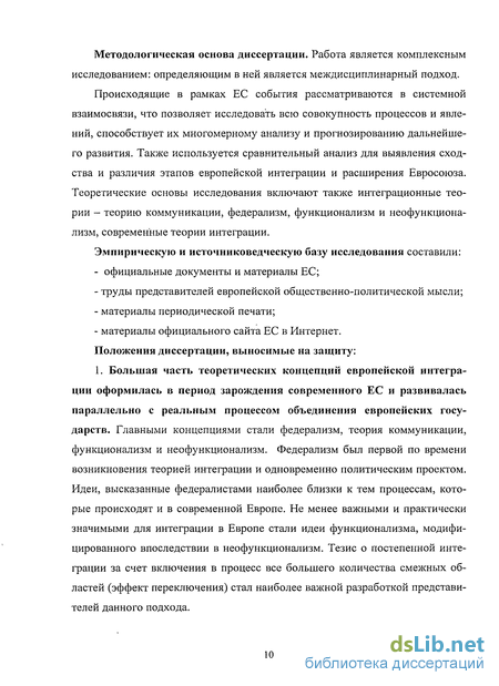 материалы официального сайта ЕС в Интернет. Положения диссертации, выносимые на защиту: