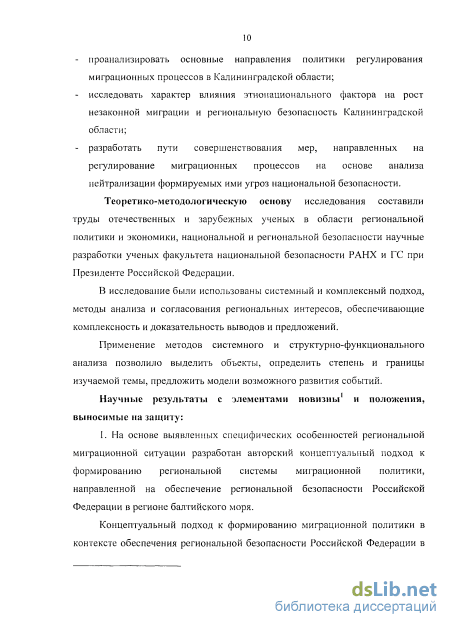 Анализ проведенных исследований показал, что ученые и исследователи внесли большой вклад в изучение разнообразных проблем миграции населения. При этом исследование большинства аспектов миграционной политики в Российской Федерации и их влияние на обеспечение национальной и региональной безопасности находится в стадии становления. Данная проблема не получила комплексного освещения в трудах отечественных политологов. Нуждаются в дальнейшем изучении также и вопросы формирования и реализации государственной миграционной политики в сфере обеспечения национальной и региональной безопасности. Это определило выбор темы диссертационного исследования.