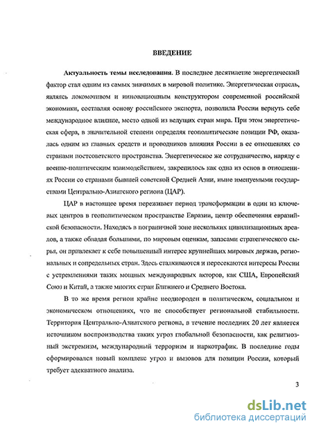 Таким образом, актуальность настоящего исследования вытекает из очевидной взаимосвязи значимости ЦАР в геостратегических интересах России и энергетического сотрудничества как приоритетного инструмента обеспечения экономических и политических целей России в регионе, возрастанием важности энергетической составляющей в мировой политике, возрастанием роли Центрально-Азиатского региона на Евразийском пространстве, вызывающим столкновение в ЦАР геостратегических интересов основных мировых центров силы между собой и с политическими устремлениями России. Эти факторы формируют специфику энергетического взаимодействия РФ с государствами ЦАР, воздействуют на развитие геополитической ситуации и поведение различных геополитических сил в регионе, на специфику, определяющую внешнюю политику и геополитическую ориента-