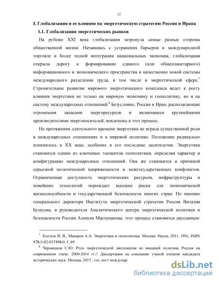 I. Глобализация и ее влияние на энергетическую стратегию России и Ирана 12