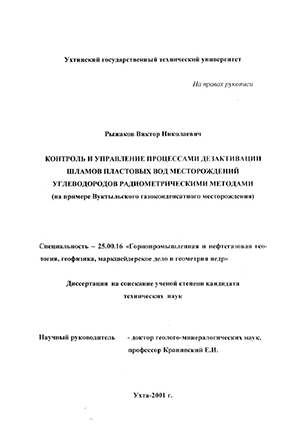 Рыжаков Виктор Николаевич. Контроль и управление процессами дезактивации шламов пластовых вод месторождений углеводородов радиометрическими методами : На примере Вуктыльского газоконденсатного месторождения : диссертация ... кандидата технических наук : 25.00.16.- Ухта, 2001.- 203 с.: ил. РГБ ОД, 61 01-5/2320-6