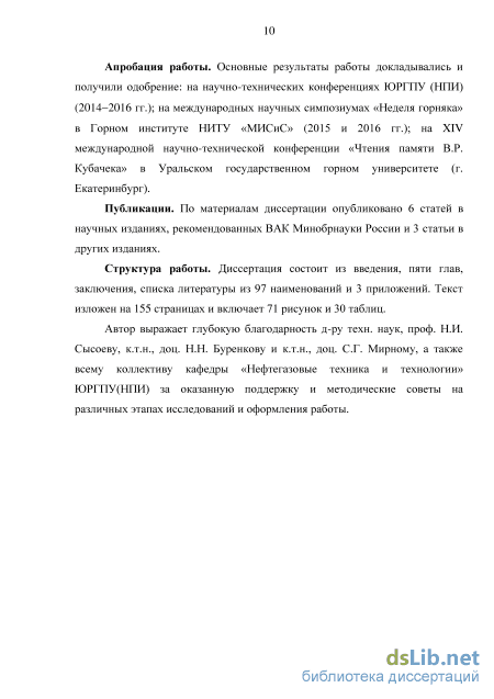 Автор выражает глубокую благодарность д-ру техн. наук, проф. Н.И. Сысоеву, к.т.н., доц. Н.Н. Буренкову и к.т.н., доц. С.Г. Мирному, а также всему коллективу кафедры «Нефтегазовые техника и технологии» ЮРГПУ(НПИ) за оказанную поддержку и методические советы на различных этапах исследований и оформления работы.