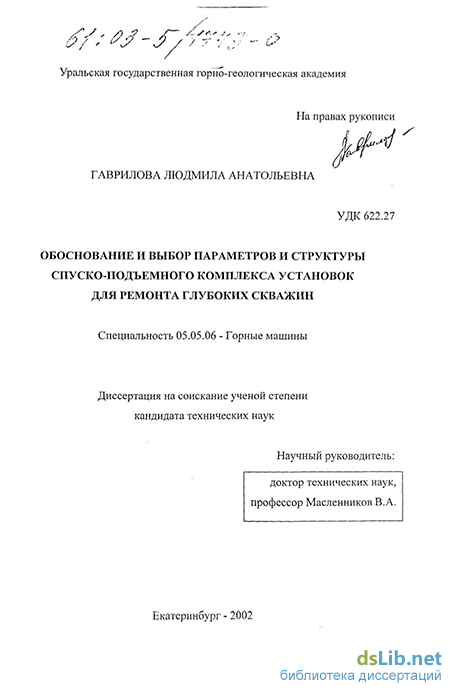 Гаврилова Людмила Анатольевна. Обоснование и выбор параметров и структуры спуско-подъемного комплекса установок для ремонта глубоких скважин : диссертация ... кандидата технических наук : 05.05.06.- Екатеринбург, 2002.- 277 с.: ил. РГБ ОД, 61 03-5/1743-0
