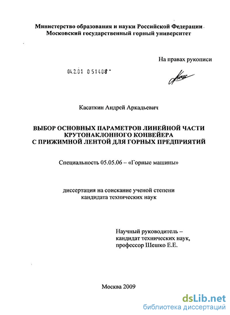 Автор работы выражает благодарность за помощь в работе проф. Дмитриеву В.Г., проф. Галкину В.И и всему коллективу кафедры «Горная механика и транспорт» МГГУ.