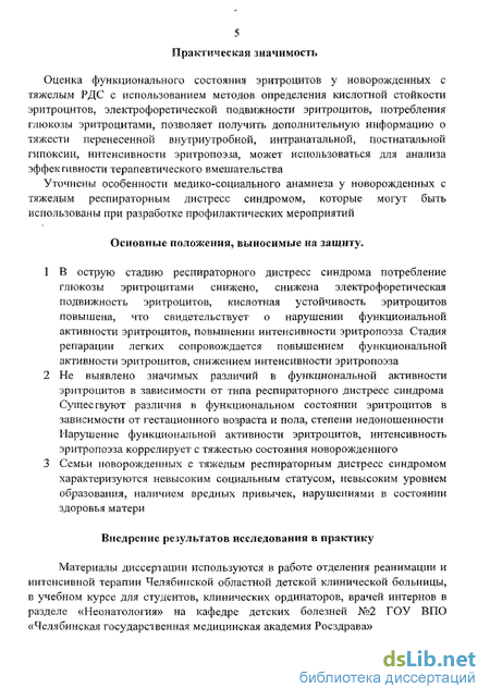 Выяснение этих вопросов имеет существенное значение для углубления современных представлений о механизмах развития и способах профилактики респираторного дистресс синдрома у новорожденных, что и послужило основанием для выполнения данной работы