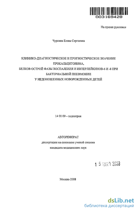 Среди тяжелых бактериальных инфекций у недоношенных новорожденных детей наиболее часто наблюдается пневмония В последние годы отмечается увеличение частоты бактериальной пневмонии у недоношенных новорожденных детей с респираторным дистресс-синдромом, находящихся на искусственной вентиляции легких, которая во многом определяет показатели больничной заболеваемости и летальности (Кешишян Е С, 1996, Мархулия X М , 2005, Stoll В J, 2002) Однако даже при развитии тяжелых форм бактериальной пневмонии у недоношенных детей на фоне респираторного дистресс-синдрома клинические и лабораторные симптомы могут быть минимальны и неспецифичны, что ведет к запаздыванию своевременной диагностики и терапии (Шабалов НН, 2001, Beratz WE, 1998, Ng Р et al, 2002) С другой стороны, гипердиагностика бактериальной инфекция у таких детей является причиной необоснованного назначения антибактериальной терапии и полипрагмазии