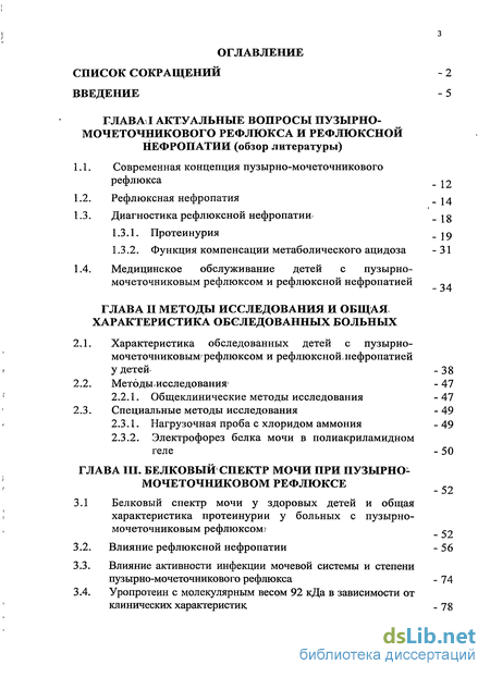 ГЛАВА III. Белковый спектр мочи при пузырно-мочеточниковом рефлюксе - 52