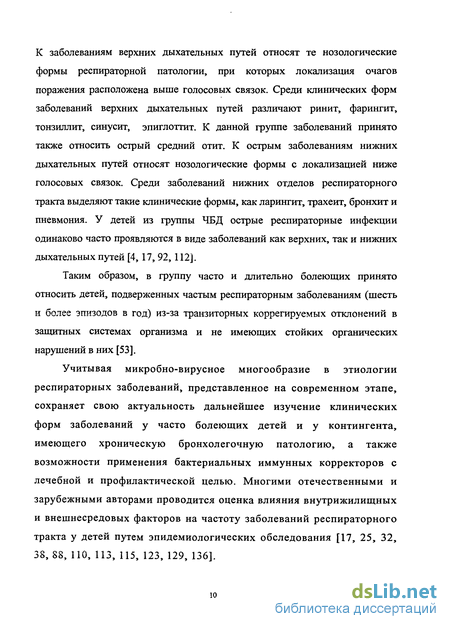 Острые респираторные инфекции продолжают занимать ведущие позиции в структуре общей заболеваемости населения России и оставаться самыми распространенными у детей. Многочисленные исследования подтверждают, что в классе болезней органов дыхания первое место занимают острые респираторные вирусные инфекции - до 90 %. В исследованиях отечественных и зарубежных ученых также подчеркивается важная роль респираторных заболеваний [4,32, 51, 90, 91,94,112].