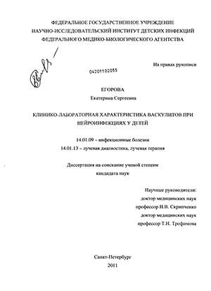 Научная новизна: Изучены клинические проявления бактериальных гнойных менингитов и вирусных энцефалитов у детей разного возраста. Доказано комплексное поражение сосудистой системы при нейроинфекциях у детей, связанное как с нарушением структурных, так и функциональных свойств сосудистой стенки, а также повреждением сосудодвигательной функции эндотелия. Научно обоснована роль генерализованных васкулитов в патогенезе инфекционных заболеваний нервной системы. Разработана тактика диагностики генерализованных васкулитов у детей путем комплексной оценки клинико-неврологических параметров, изменений в анализах крови с последующим расчетом линейно-дискриминантных функций. Обосновано дифференцированное применение сосудистых препаратов в лечении нейроинфекций у детей.