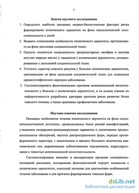 Выявить клинические особенности атопического дерматита, протекающего на фоне дисплазии соединительной ткани.
