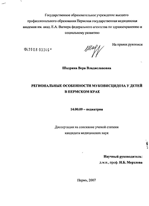 Шадрина Вера Владиславовна. Региональные особенности муковисцидоза у детей в Пермском крае : диссертация ... кандидата медицинских наук : 14.00.09 / Шадрина Вера Владиславовна; [Место защиты: ГОУВПО "Пермская государственная медицинская академия"].- Пермь, 2007.- 139 с.: ил.
