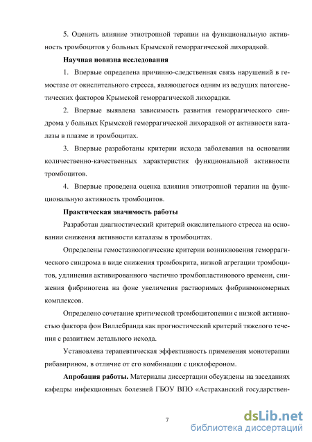 Впервые определена причинно-следственная связь нарушений в гемостазе от окислительного стресса, являющегося одним из ведущих патогенетических факторов Крымской геморрагической лихорадки.