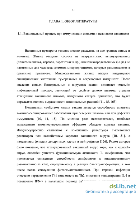 Негативным свойством живых вакцин является способность вызывать вакциноассоциированные заболевания при реверсии штамма или при дефектах иммунитета [10, 11, 18]. По мнению ряда исследователей, наиболее выраженным иммуносупрессивным эффектом обладает коревая вакцина. Иммуносупрессию связывают с изменением репертуара Т-клеточных рецепторов под воздействием коревого вакцинного вируса [10, 51], c изменением функции дендритных клеток и нейтрофилов [126]. Рядом авторов было показано, что аттенуированный вакцинный вирус кори, как и «дикий» вирус, способен угнетать функциональную активность Т- лимфоцитов, что проявляется снижением способности лимфоцитов к индуцированному размножению in vitro, определяемому в реакции бласттрансформации, в том числе после стимуляции фитогемагглютинином. При коревой инфекции отмечено переключение Тh1 типа ответа на Тh2, снижение концентрации IL-1 и повышение IFN- в начальном периоде заболевания с повышением далее цитокинов Тh2 типа (11, 15, 126]. При вакцинации также возникает дисбаланс в