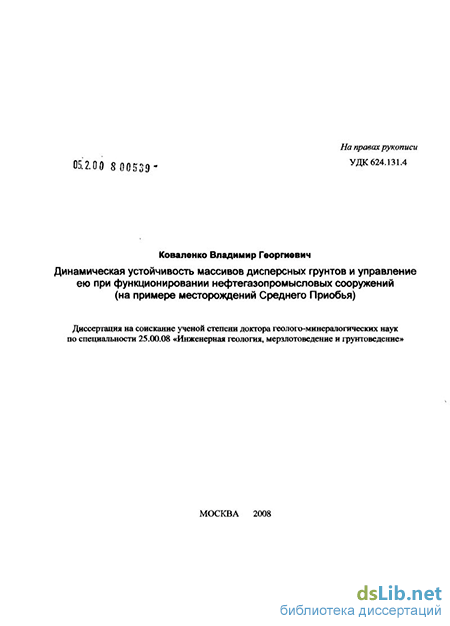 7) в разработке инженерно-геологических и инженерно-технических мероприятий по управлению динамической устойчивостью массивов дисперсных грунтов Нижневартовского нефтегазоносного района.