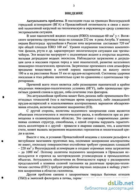 Фактический материал. Работа выполнена на основе исследований автора, проведенных во время обучения в аспирантуре и докторантуре на кафедре инженерной геологии и геоэкологии (ИГиГ) ВолгГАСУ и работы в Волгоградском отделении Российской экологической академии. Кроме того, был использован большой объём опубликованной литературы и фондовых материалов: буровых, геофизических, инженерно-геологических, гидрогеологических, гидрохимических, медицинских и других исследований институтов «Гидропроект», «Ростовводоканалпроект», НИИ Гигиены труда и профпатологии, Санитарно-гигиенического института (С-Петербург), ГНЦ НИИОПиК, ВНИИВодГЕО, ИФЗ РАН, Волгоградского областного и городского комитетов по охране природы, Волгоградского отделения Российской экологической академии, Волгоградского областного отдела по здравоохранению. Изучены данные по геодезическим полигонам, колонки десятков буровых скважин, нескольких тысяч результатов лабораторного изучения грунтов, подземных и поверхностных вод и воздуха, тысяч данных по заболеваемости населения.
