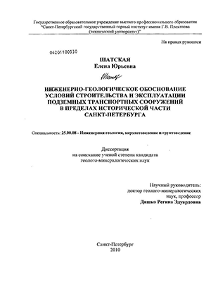 Фактический материал и личный вклад автора. Диссертационная работа подготовлена на основе исследований, проведенных кафедрами гидрогеологии и инженерной геологии и строительства горных предприятий и подземных сооружений СПГГИ(ТУ), в которых автор принимал непосредственное участие, с 2006 года. Участие автора в проведении специализированной съемки эскалаторного и глубоких перегонных тоннелей Петербургского метрополитена с отбором образцов разрушенных конструкционных материалов и натечных форм; проведение экспериментальных исследований для оценки особенностей разрушения несущих обделок, изучения влияния гидродинамического и гидрохимического воздействия напорного водоносного комплекса на деформации тоннелей и разрушение конструкционных материалов; влияние строительства подземных станций на развитие оседания земной поверхности в пределах плотной застройки исторического центра города.