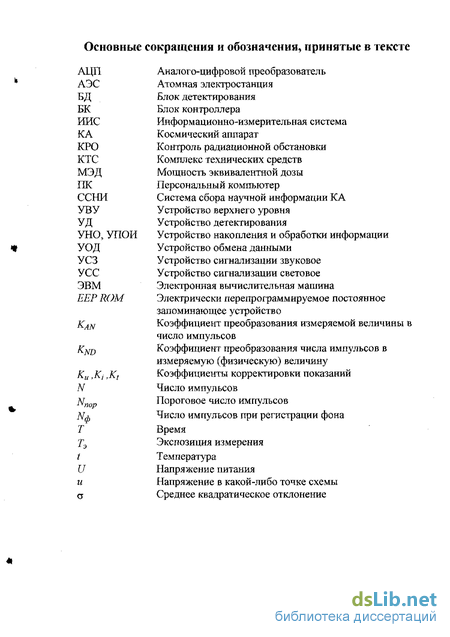 Основные сокращения и обозначения, принятые в тексте Введение Глава 1 Комплексы и системы для радиационных измерений