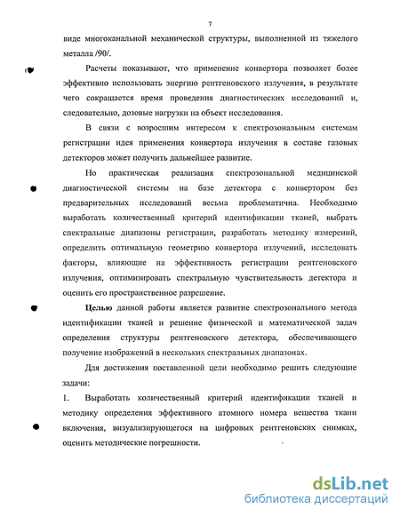 Целью данной работы является развитие спектрозонального метода идентификации тканей и решение физической и математической задач определения структуры рентгеновского детектора, обеспечивающего получение изображений в нескольких спектральных диапазонах.