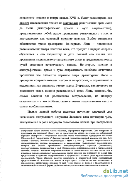 В связи с этим проблема чудесного на сцене испанского театра Золотого века впервые для отечественного искусствознания выдвигается в настоящей работе как ее непосредственная тема с учетом жанровых особенностей диссертационного исследования. Это подразумевает, что категория чуда как «ведущий смысловой мотив» (В.Е. Хализев) или «инвариант»1 для национального