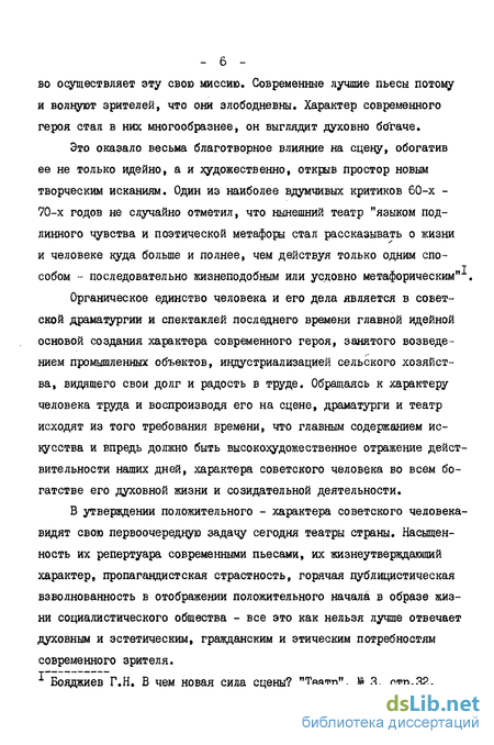 В утверждении положительного - характера советского чедовека-видят свою первоочередную задачу сегодня театры страны. Насыщенность их репертуара современными пьесами, их жизнеутверждающий характер, пропагандистская страстность, горячая публицистическая взволнованность в отображении положительного начала в образе жизни социалистического общества - все это как нельзя лучше отвечает духовным и эстетическим, гражданским и этическим потребностям современного зрителя. Бояджиев Г.Н. В чем новая сила сцены? "Театр", № 3, стр.32.