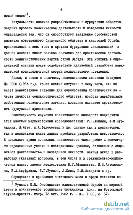 Исходя из актуальности предмета изучения, диссертант поставил себе целью дать систематический, комплексный анализ концепций "политического поведения" в американской буржуазной социо -логии под определенным углом зрения.