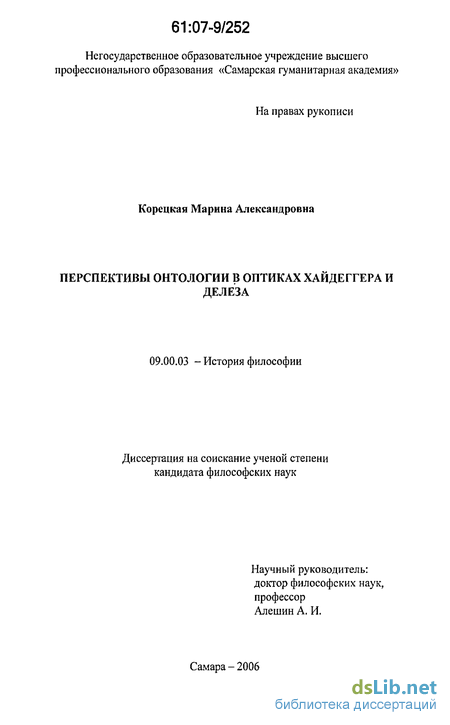 философских оптик Хайдеггера и Делеза, из которых разворачиваются вполне определенные перспективы онтологической проблематики, с тем, чтобы разработка этой темы если и не дала ответа на означенные выше вопросы, то, по крайней мере, пояснила бы их смысл.