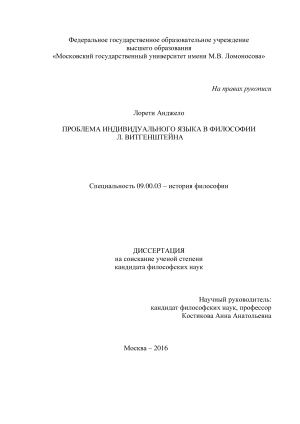 литературу по Витгенштейну внесли диссертационные исследования. Здесь необходимо напомнить труды Н.В. Медведева16, Е.Л. Устинской17, Е.Е. Медведевой18, К.А. Родина19, Е.А. Давыденко20, А.В. Смирнова21 , В.А. Суровцева22 , С.Ю. Уколова23 , И.В. Родиной24 , З.А. Сокулер25, Е.А.Чичневой26 (работа которой впервые в рамках российских исследований изучает влияние феноменологии на философию Витгенштейна) и других.