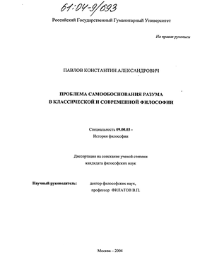 Научная новизна исследования. Научная новизна диссертационного исследования связана, главным образом, с таким подходом к проблеме рациональности, который не предполагает объективирующей дистанции по отношению к исследуемому феномену. Вместо того, чтобы в дистанционном порядке описывать «типы рациональности», классифицировать их и заниматься вопросами соизмеримости или же несоизмеримости исследуемых «объектов», была предпринята попытка поставить вопрос о самообосновании разума, предполагающий невозможность полного исключения экзистенциальных и субъектных особенностей исследуемых «феноменов рациональности».