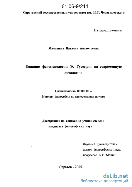 - Преемственности принципов тождества и различия в феноменологической концепции Э. Гуссерля