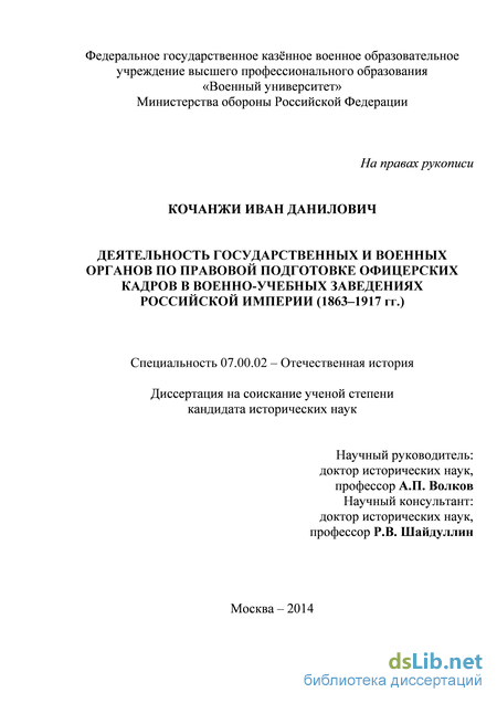 Российской империи по правовой подготовке офицерских кадров русской