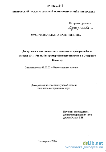 Степень научной разработанности проблемы. Проблема депортации немецкого населения в целом и немцев Северо-Кавказского региона в частности является одной из самых малоизученных тем в отечественной историографии. Необходимо отметить, что только в последние годы стали появляться труды, в которых интересующие нас вопросы получили достаточно объективное освещение. Тем не менее специальных работ, в которых подробно рассматривался бы процесс конкретных депортационных операций применительно к районам традиционного компактного расселения немцев, очень мало. В то же время нельзя отрицать и того, что исследуемая проблема постоянно интересовала ученых с самого момента ее возникновения.