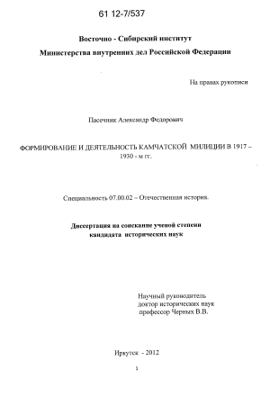 - Становление аппарата советской милиции на Камчатке в 1922-30 гг