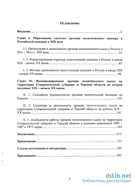 II. 2. Структура и деятельность органов политического сыска на территории Ставропольской губернии и Терской области на рубеже XIX -