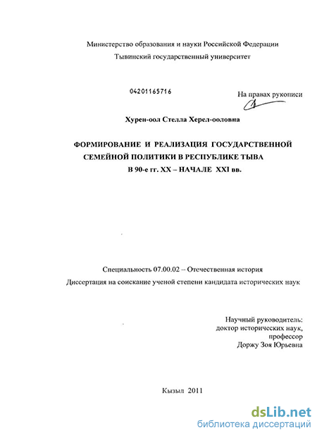Целью диссертационного исследования является выявление тенденций формирования и реализации государственной семейной политики в Республике Тыва.