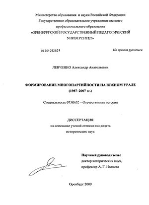 Апробация и использование практических результатов исследования. Основные положения работы нашли отражение в 7 публикациях, докладывались и обсуждались на всероссийских и межвузовских конференциях в Оренбурге и Санкт-Петербурге. Диссертация обсуждена и рекомендована к защите на заседании кафедры истории Отечества и социально-политических теорий Оренбургского государственного педагогического университета.
