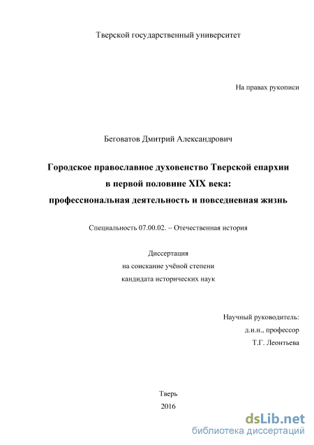 "1 Леонтьева Т.Г. Формирование и деятельность церковной интеллигенции Тверской губернии // Тверская старина. 1994. № 3. С. 3-27; Розов А.Н. Указ. соч.; Пулькин М.В. Указ. соч.