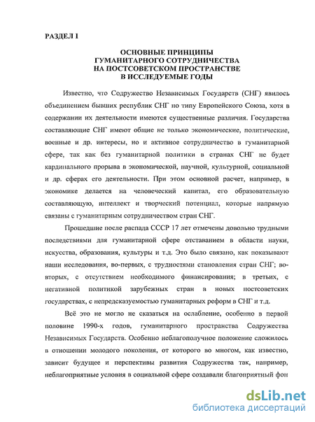 Раздел I ОСНОВНЫЕ ПРИНЦИПЫ ГУМАНИТАРНОГО СОТРУДНИЧЕСТВА НА ПОСТСОВЕТСКОМ ПРОСТРАНСТВЕ В ИССЛЕДУЕМЫЕ ГОДЫ 12