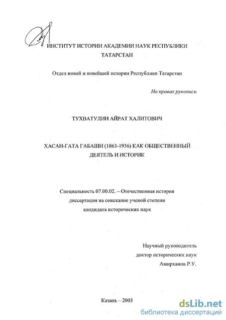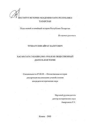 К этому же времени относится и начальный этап систематических занятий будущего ученого историей тюрков. Более всего его привлекали проблемы происхождения татар и вопросы взаимоотношений кочевых племен с земледельческими народами. Он много работает над арабскими и персидскими источниками, изучает и переписывает труды Н.М.Карамзина, С.М.Соловьева, В.О.Ключевского. Наряду с этими российскими учеными, главным авторитетом для Х.-Г.Габаши стал Шигабутдин Марджани. Хасан-Гата Габаши в сборнике, посвященном жизни и творчеству этого деятеля, отмечал: «Перед нашей нацией, которая не признавала историю наукой, у Марджани есть величайшая заслуга - он заложил основу нацио-нальной историографии» . Необходимо отметить, что о «татарском Геродоте», т.е. о Марджани, Хасан-Гата узнал еще в детстве от своих родителей: «Мой дед Габаш хазрат и отец Мухаммад хазрат знали Марджани и часто с ним общались, понимали его мысли, при необходимости обращались к нему за помощью»1. Первоначально малолетнего Х.-Г. Габаши родители собирались определить в медресе Ш. Марджани, но потом передумали и отдали его в медресе при Азимовской мечети.