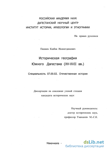 Кавказ является крупным географическим регионом. В его пределах на протяжении тысячелетий происходили значительные исторические события и они оказали определенное влияние на многие страны и народы. Выгодное геостратегическое положение на стыке Северного Кавказа и Закавказья во многом предопределило роль народов Южного Дагестана в тех исторических событиях, которые происходили на протяжении ХУ-ХУП вв.
