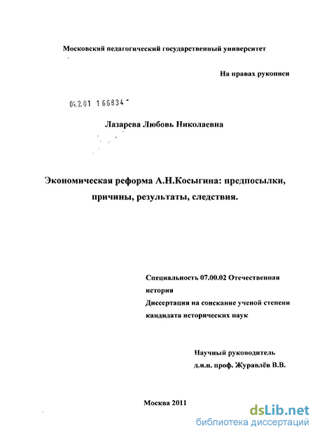 исследовано состояние народного хозяйства СССР в пореформенный период и выявлены факторы, сделавшие реформирование экономики необходимым;